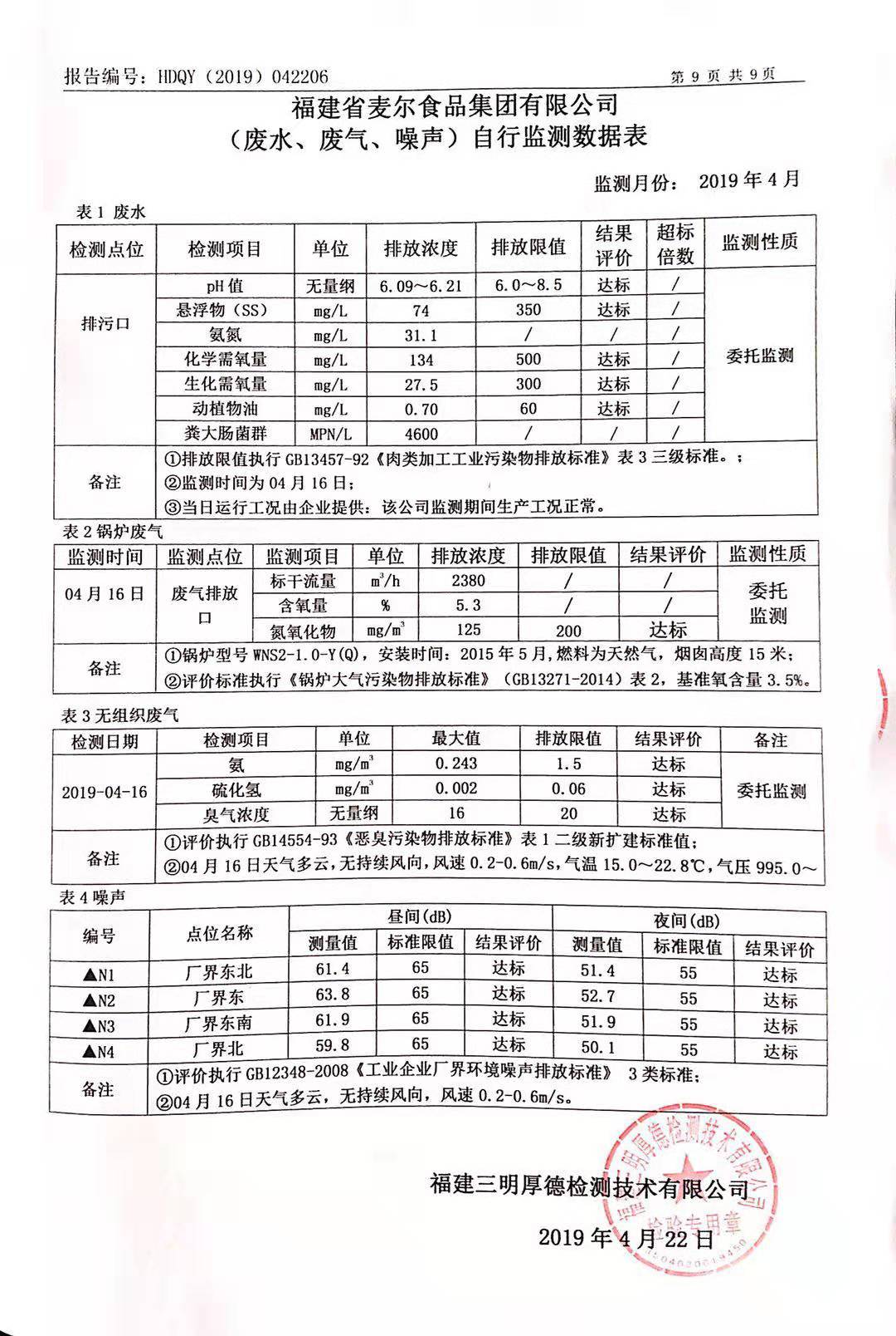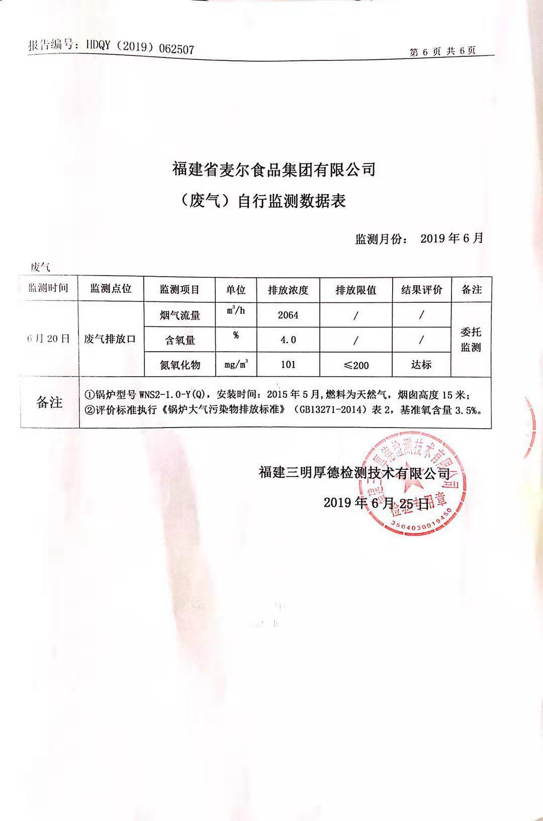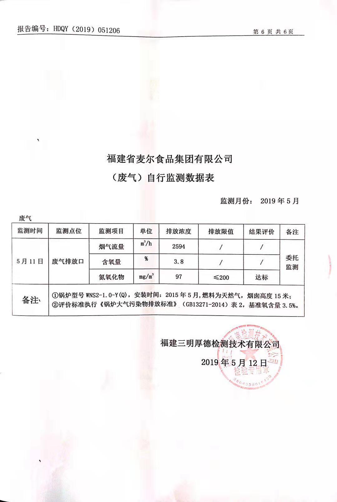 2019年麥爾食品集團(tuán)-環(huán)境監(jiān)測報(bào)告公示